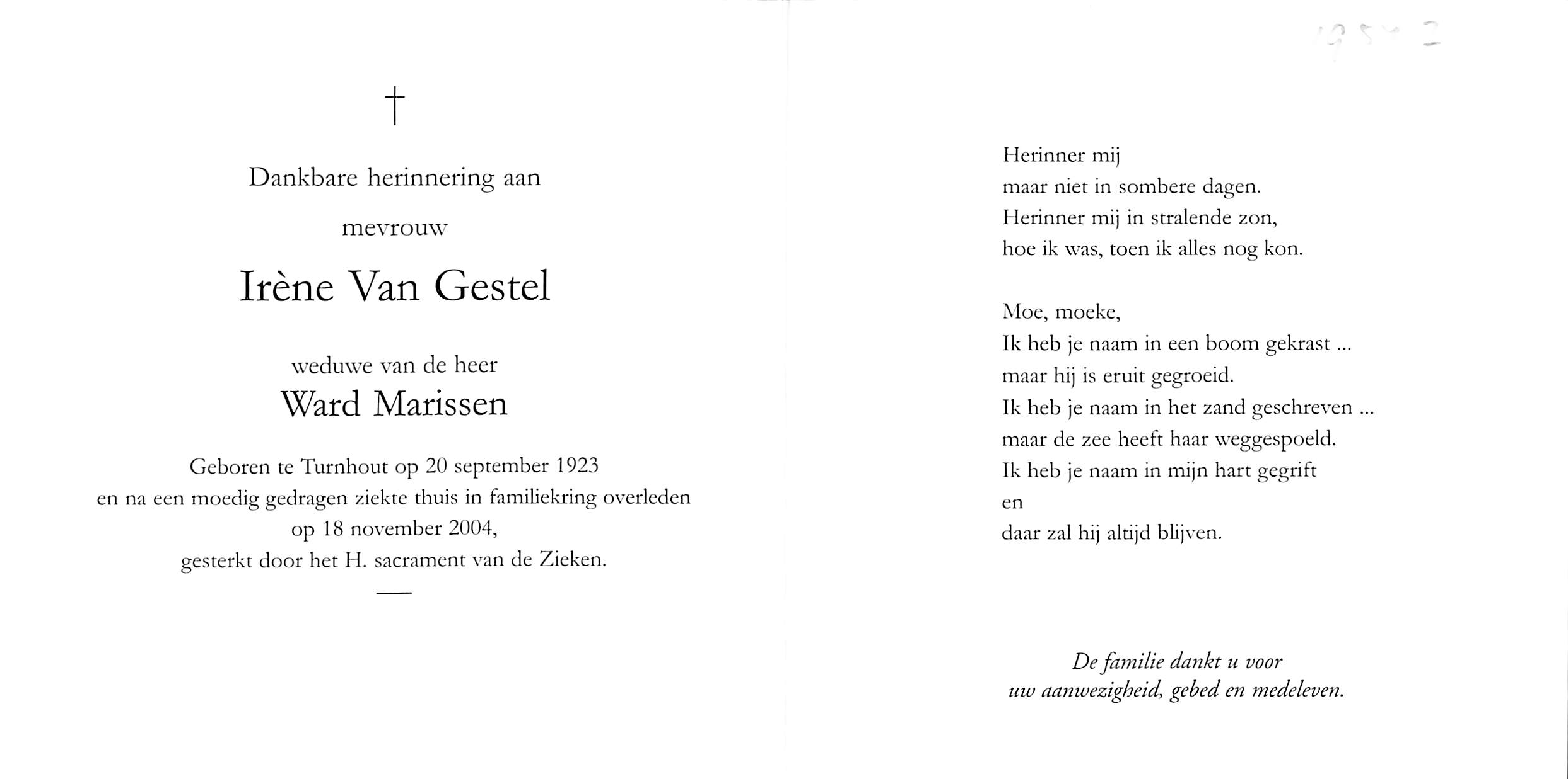 Dag van overlijden 18 november 2004